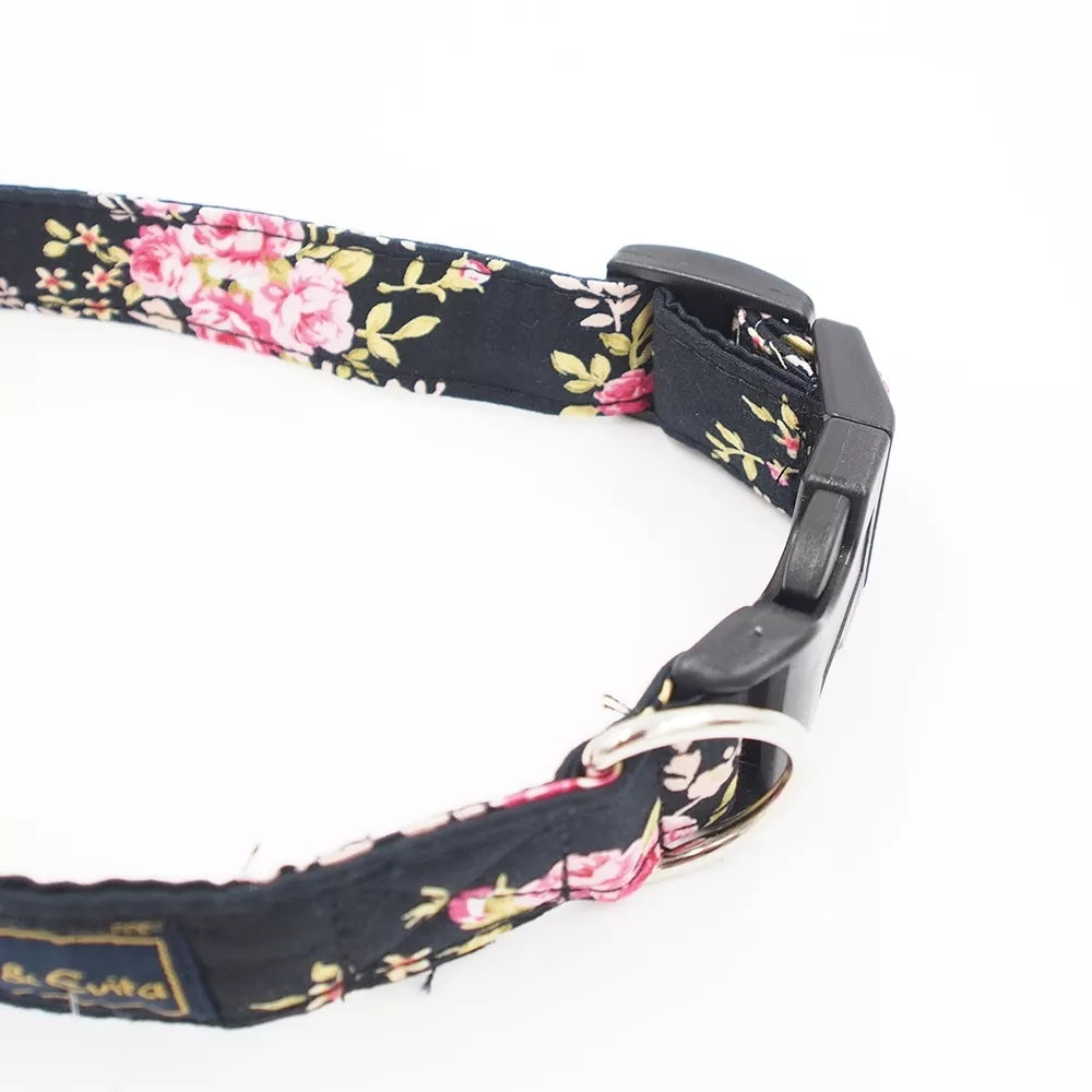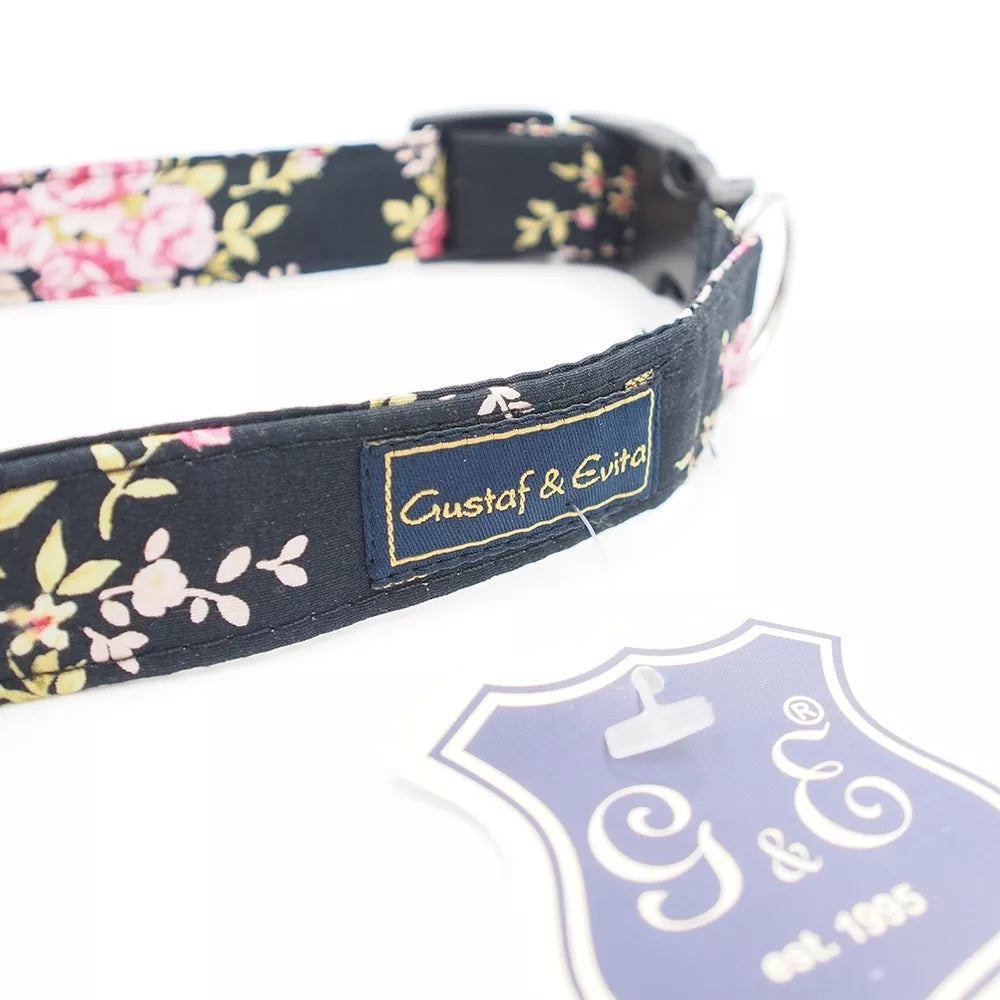 Šuns antkaklis „Gustaf & Evita“, 50 cm (juodas su gėlėmis)