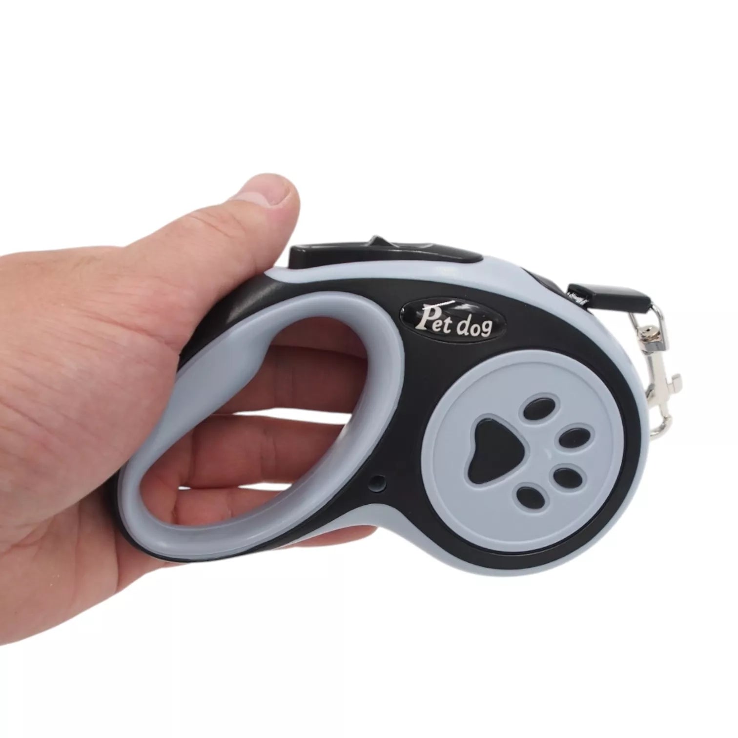 Lengvas naudojimas – vieno mygtuko mechanizmas leidžia sustabdyti, fiksuoti arba atlaisvinti pavadėlį vos vienu paspaudimu.
